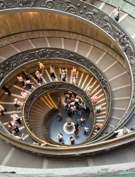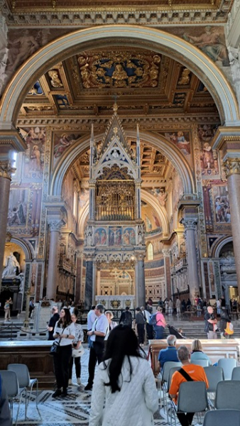 in het Colloseum en Vaticaanse musea door een gids. Dan de Spaanse trappen, Trevifontein, Sixtijnse kapel, Audiëntie bij de paus, bezoek st. Jan van Lateranen. Het was héél indrukwekkend.