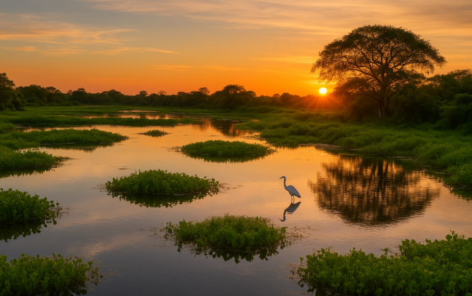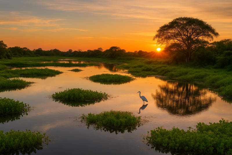 De natuur en het moeras van de Pantanal. We slapen daar op een facenda ( een lokale boerderij)